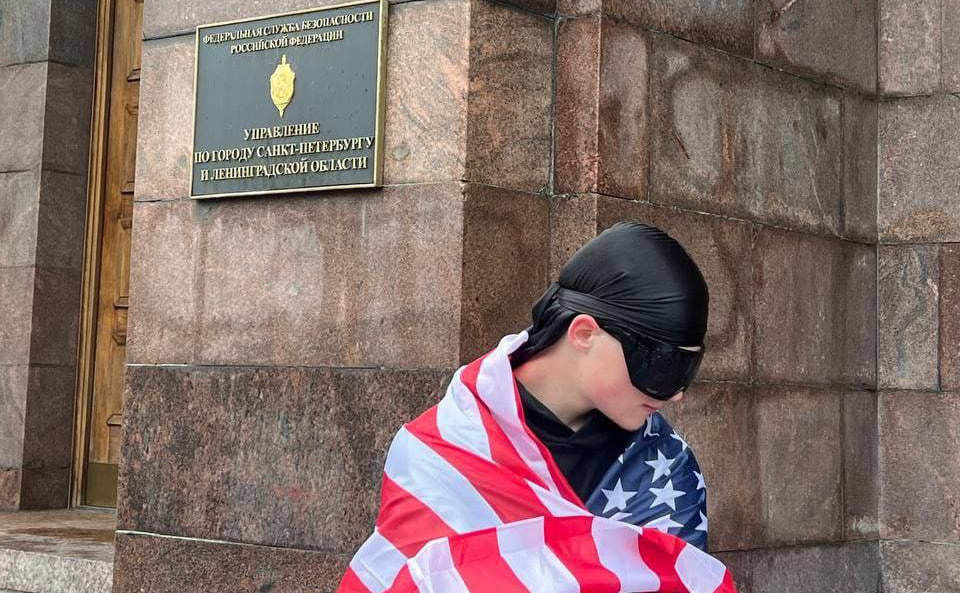 В Петербурге школьники устроили фотосессию с флагом США у здания ФСБ