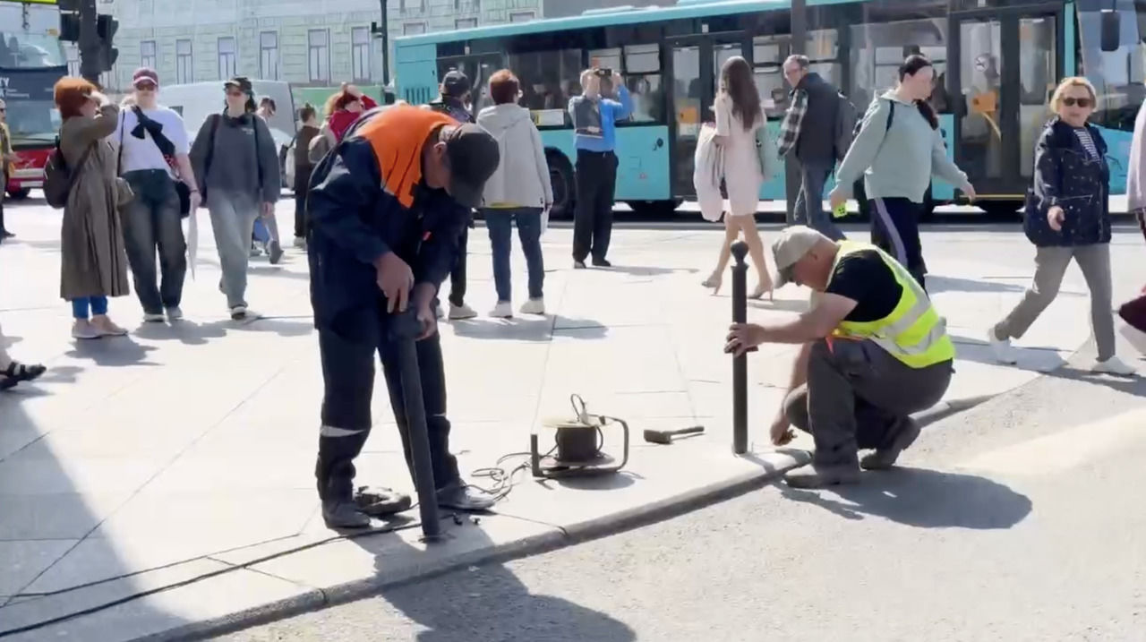 В Петербурге установили 87 столбиков на участке от Невского проспекта до Спаса на Крови