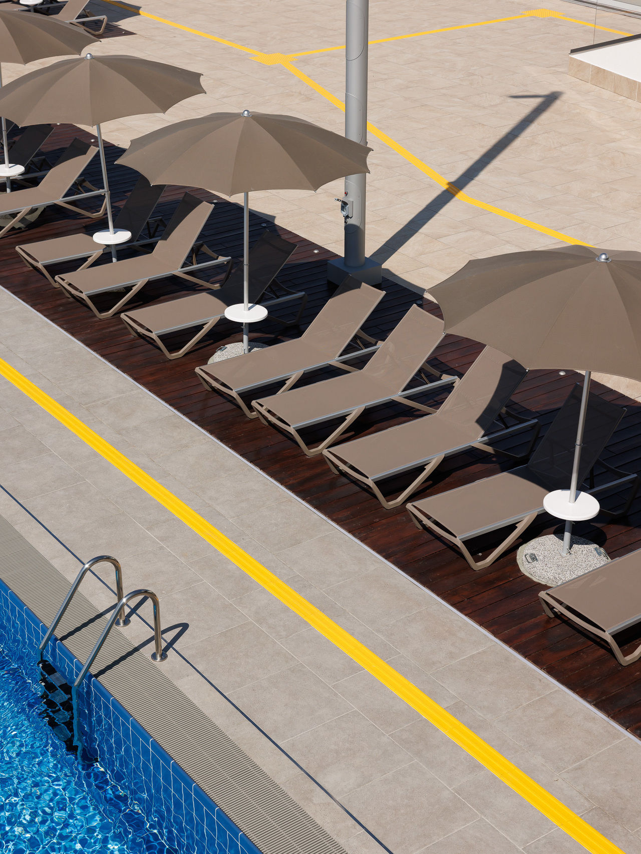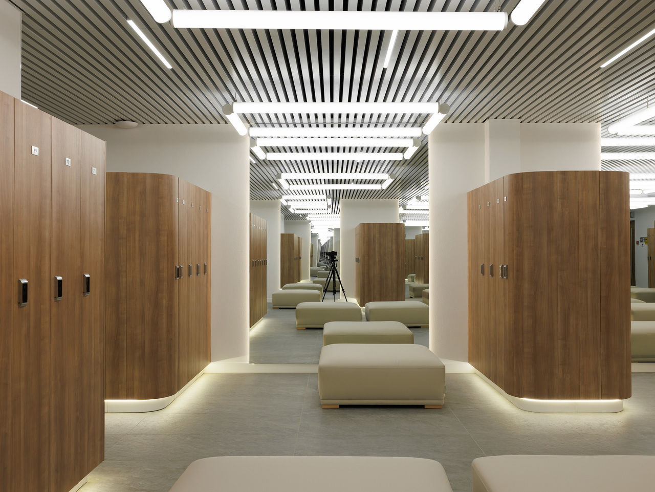 Что ж, приступаем к делу. На входе получаем цифровой браслет. Оплачивать услуги необходимо через кассу, но именно при наличии браслета выдают полотенце и можно открыть шкафчики в раздевалке. Прямо как в аквапарке. Кстати, аренда полотенца стоит 250 рублей. Поэтому, чтобы не тратить лишние деньги, лучше прихватить с собой полотенце, тапочки, купальник и шапочку. На террасе много лежаков с зонтами, а рядом находятся островки с мягкими креслами и диванами. Раздевалки просторные, душевые чистые, шкафчиков достаточно. Есть отдельная зона с раковинами, зеркалами и фенами. Последние, правда, слабоваты – волосы средней длины не просохли даже после 10 минут. Пришлось выйти после сеанса с влажной головой. Очевидный плюс: прямо из раздевалки можно сразу попасть в большой 50-метровый бассейн. И для этого даже не надо выходить на улицу.