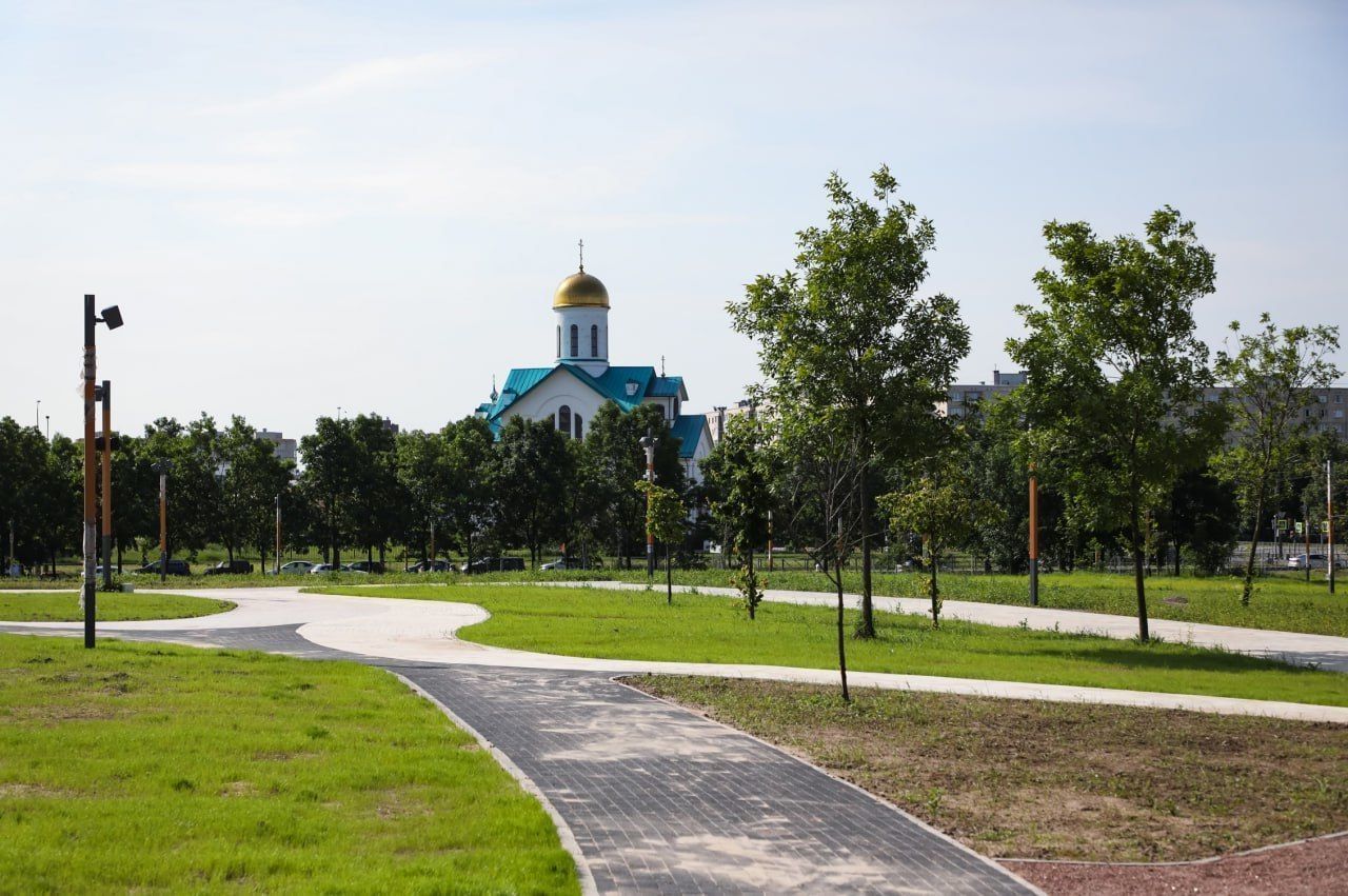 Зелёная зона расположена на Дунайском проспекте рядом с медицинским центром «Микрохирургия глаза» имени Святослава Федорова. Сейчас рабочие занимаются обустройством пешеходных дорожек и газонов.