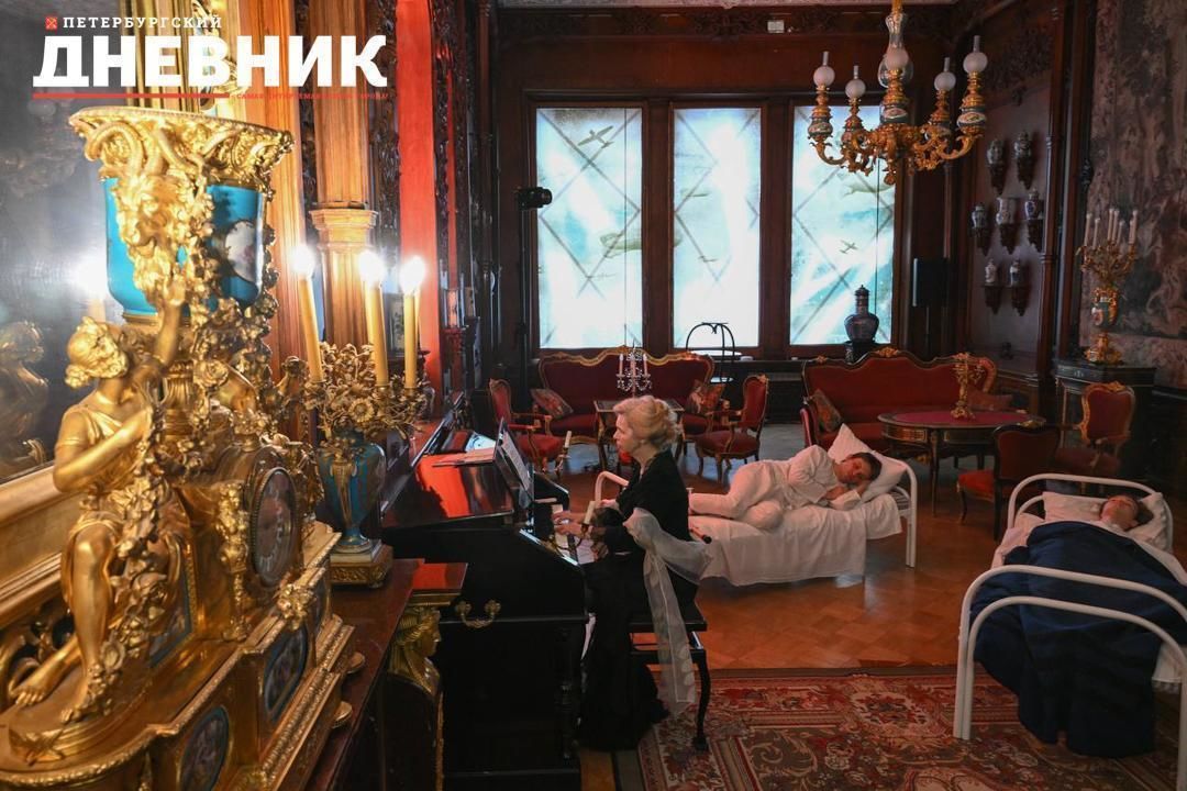 Набережная Мойки, 94 – за этим скромным фасадом 300 лет истории. От царевны Прасковьи, племянницы Петра I, до князей Юсуповых и работников просвещения. Все ключевые события как на ладони. Вот, например, за одним столом играют в карты знатная дама и девушка советской эпохи под яркими прожекторами. Здесь же гостям улыбается сама Татьяна Юсупова, ожившая с помощью искусственного интеллекта. Сопровождают современные инсталляции символы времени: вращающиеся стрелки и циферблат. Театрализованное мультимедийное действие создал режиссер Виктор Крамер.