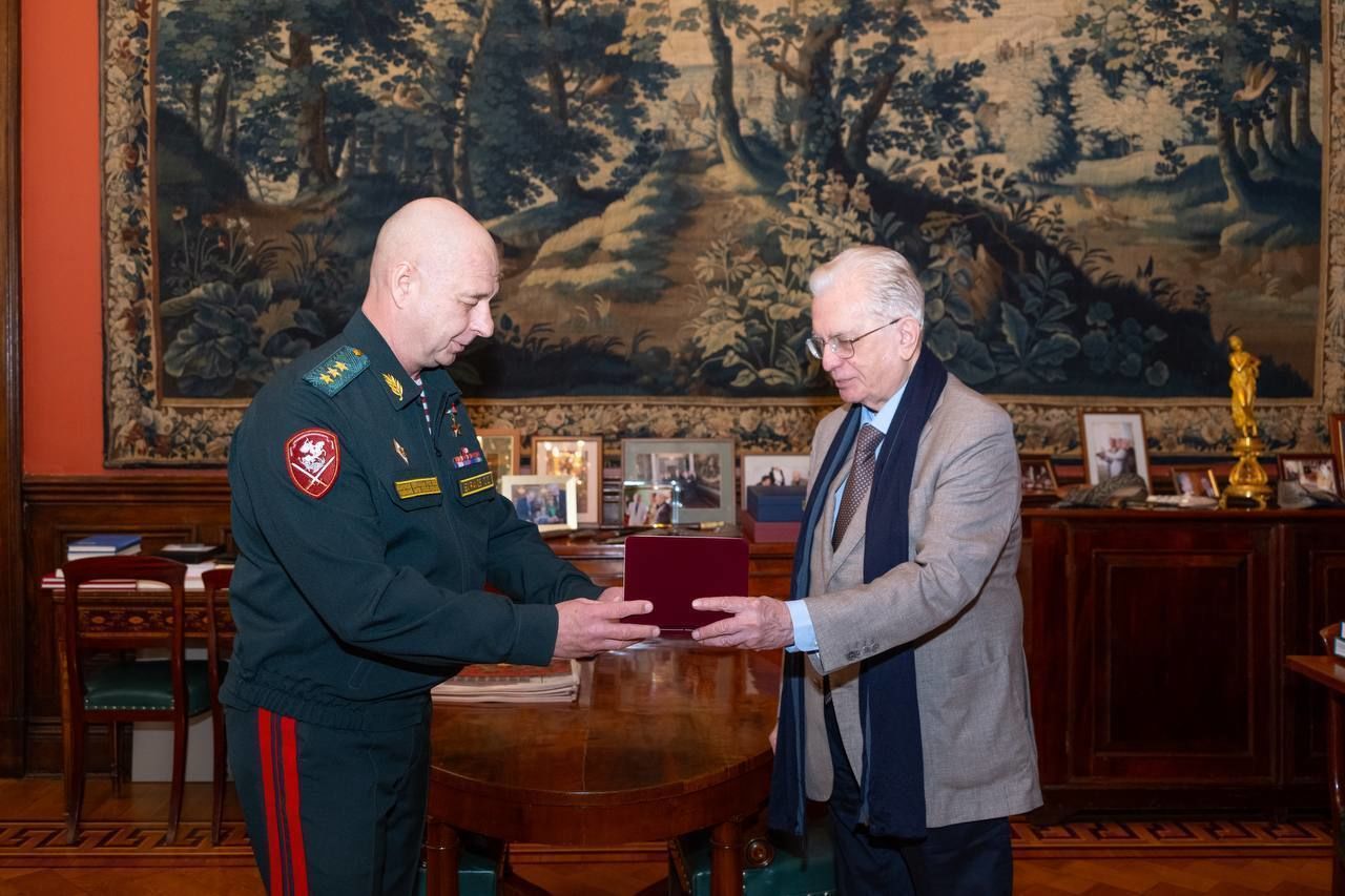 В Петербурге командующий Северо-Западным округом Росгвардии Герой России генерал-полковник Сергей Бураков вручил Пиотровскому медаль «Генерал армии Яковлев».