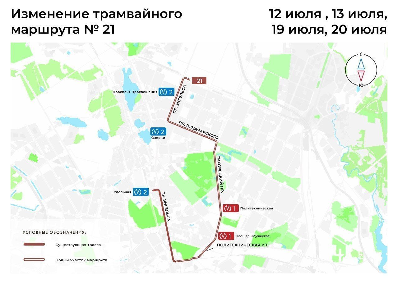 В Петербурге на четыре дня изменят маршрут трамвая № 21
