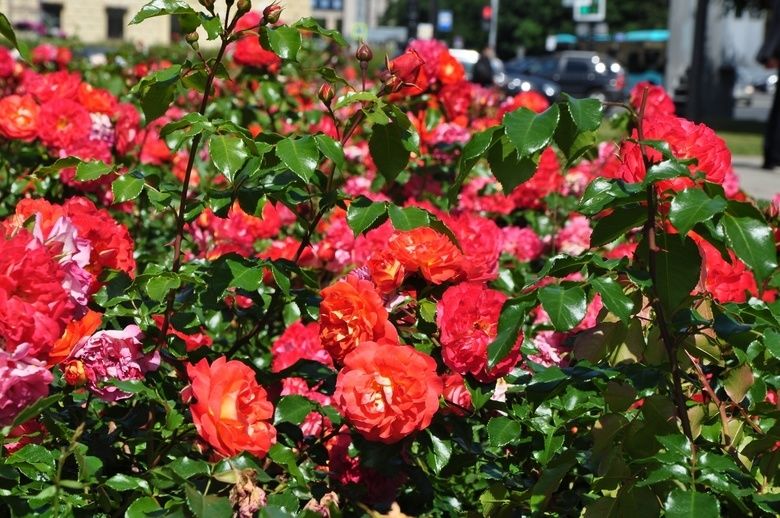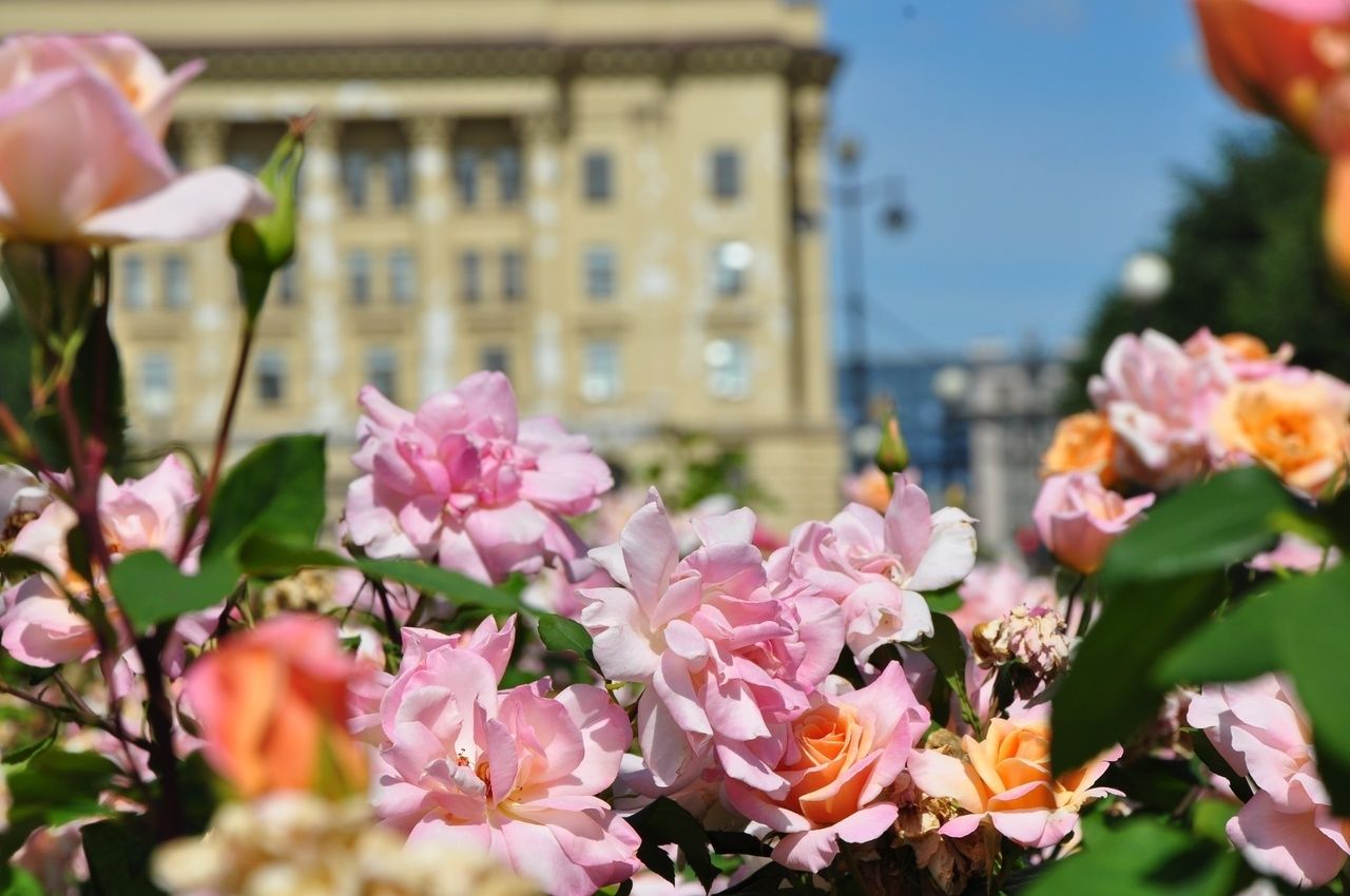 Разнообразие сортов и оттенков не оставляет равнодушным: в цветочном ансамбле распустились розы и нежных пастельных тонов, и ярких насыщенных красок. Прогулка по скверу доставит удовольствие любителям природы и красивых видов.