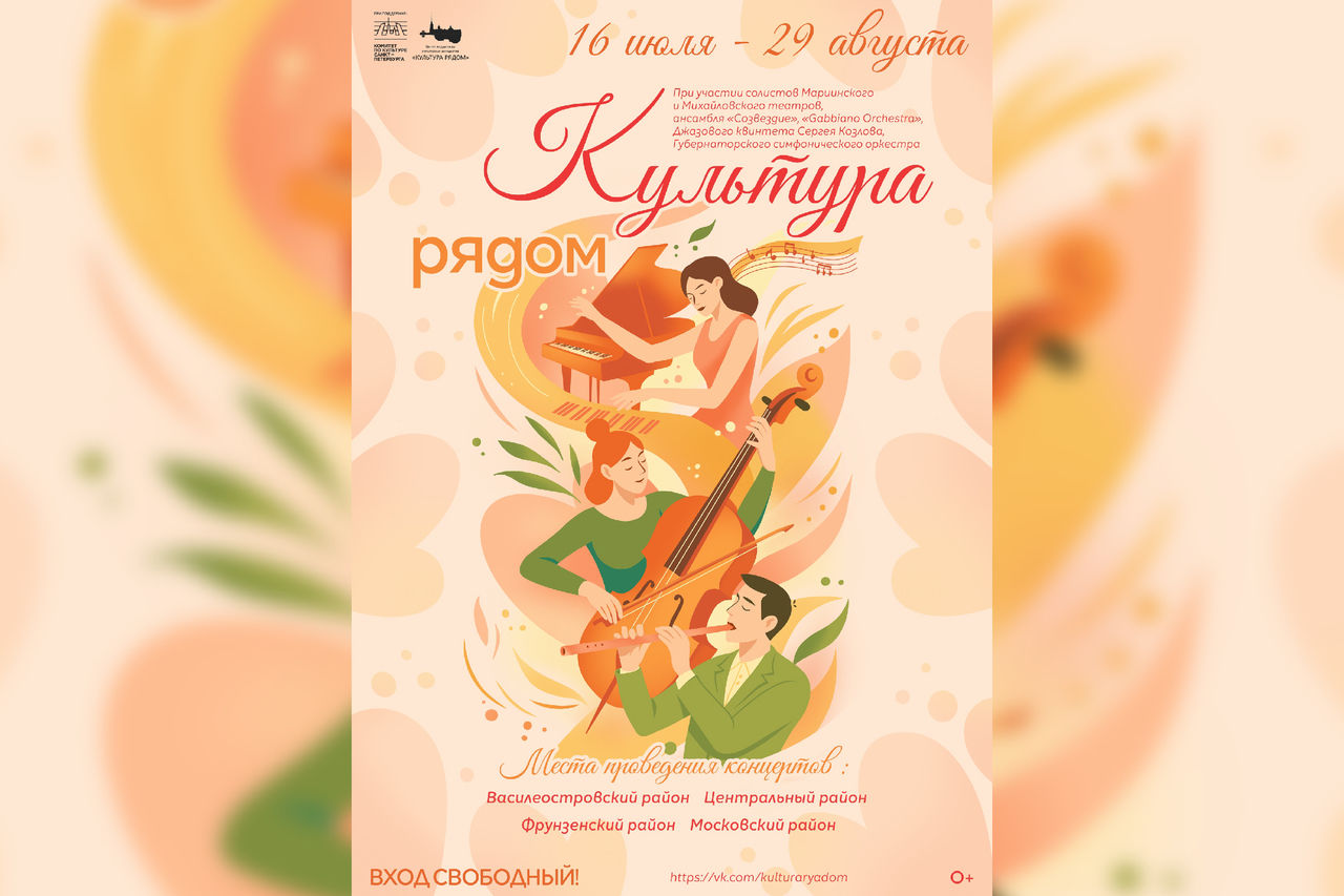16 июля в Санкт-Петербурге стартует XVI фестиваль «Культура рядом – 2025» (0+), в рамках которого до 29 августа состоится десять концертов классической музыки в четырех районах города. Вход свободный.