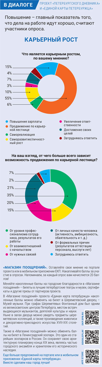 Опрос, проведенный изданием «Петербургский дневник» совместно с порталом «Единая карта петербуржца» (ЕКП), показал, что повышение – главный показатель того, что дела на работе идут хорошо, считают участники опроса.