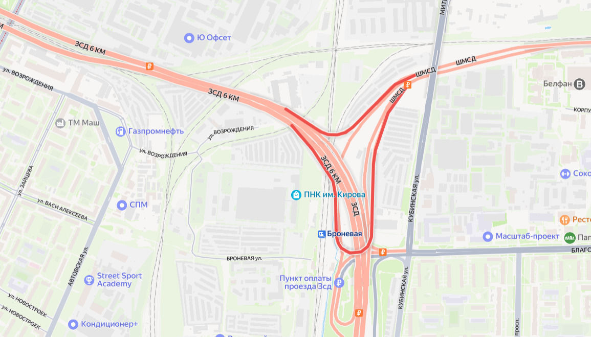 С 22:00 17 июля до 6 утра 18 июля закроют съезд со Скандинавского шоссе на ЗСД в направлении юга.