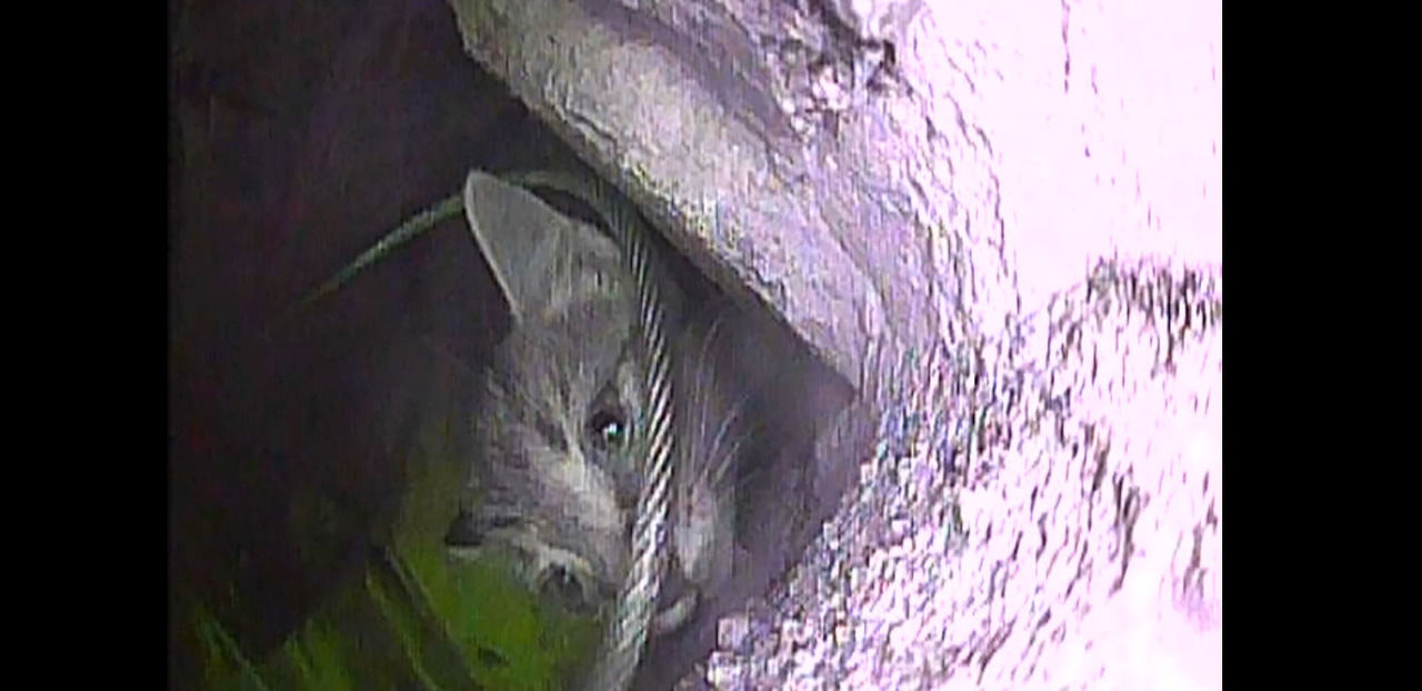 Спасатели из организации «Кошкиспас» рассказали и показали, как спасали котенка из неиспользуемой дымовой трубы частного дома в районе Красного Села.