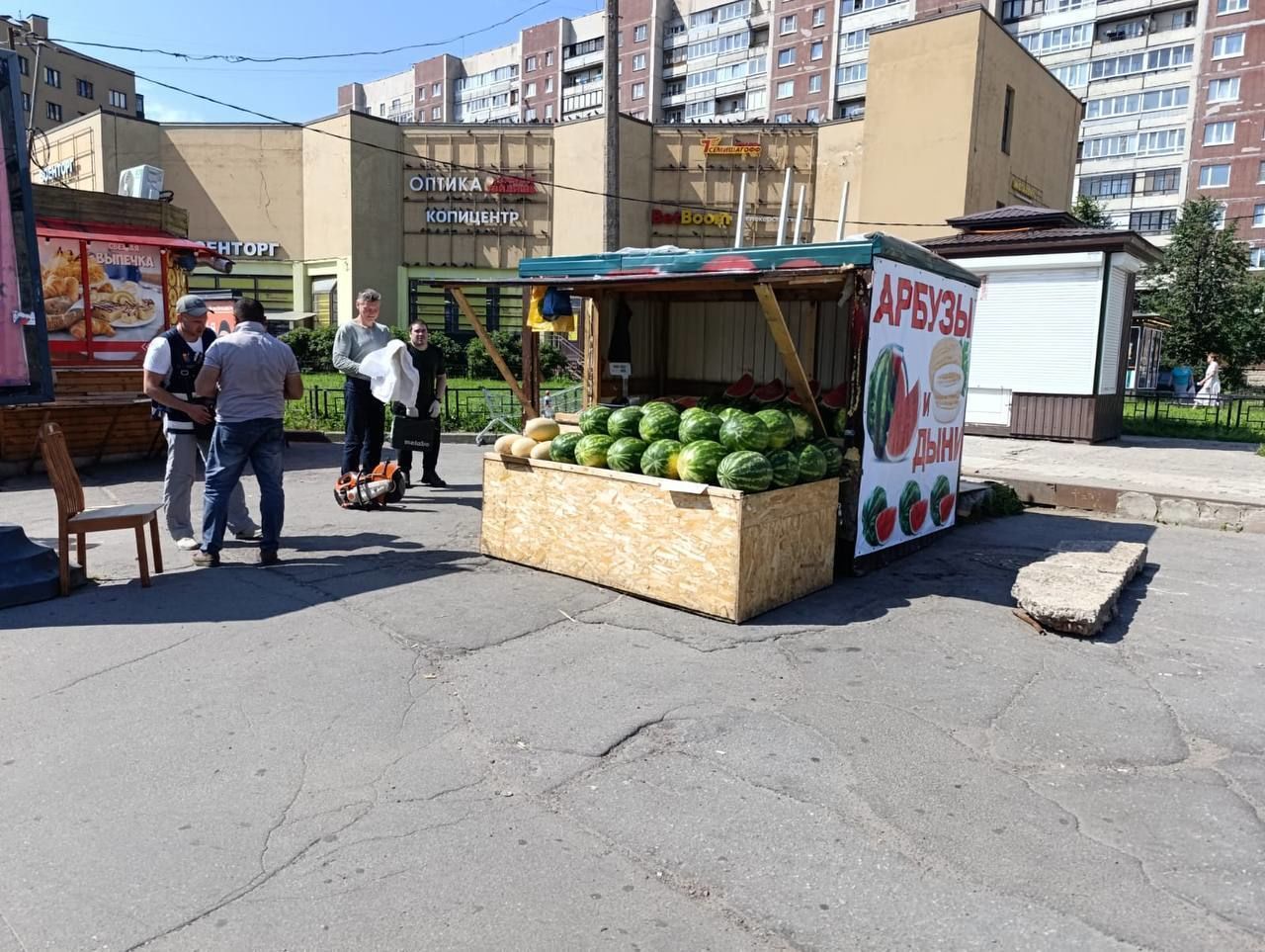 В Петербурге демонтировали нелегальный ларек с арбузами и дынями на проспекте Энгельса