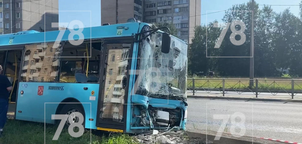 Автобус врезался в столб на проспекте Большевиков в Петербурге