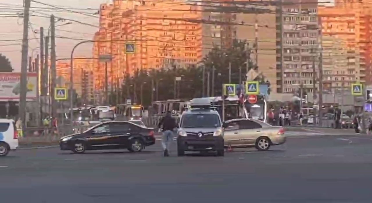Видео: авария легковушек привела к массовой остановке трамваев на Энгельса
