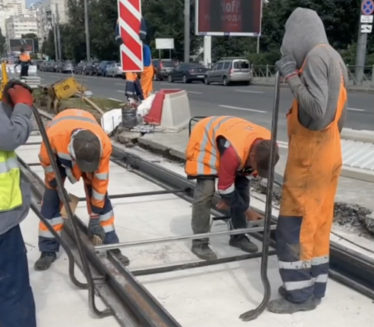 Как отмечается, на перекрёстках шпальное основание заменяется на бетонную плиту, а межрельсовое пространство будет заполнено долговечным литым асфальтобетоном.