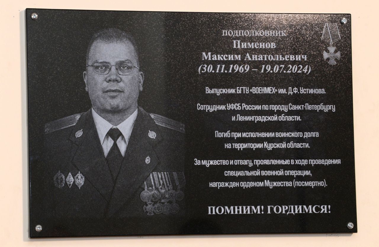 В «Военмехе» установили памятную доску подполковнику УФСБ Максиму Пименову