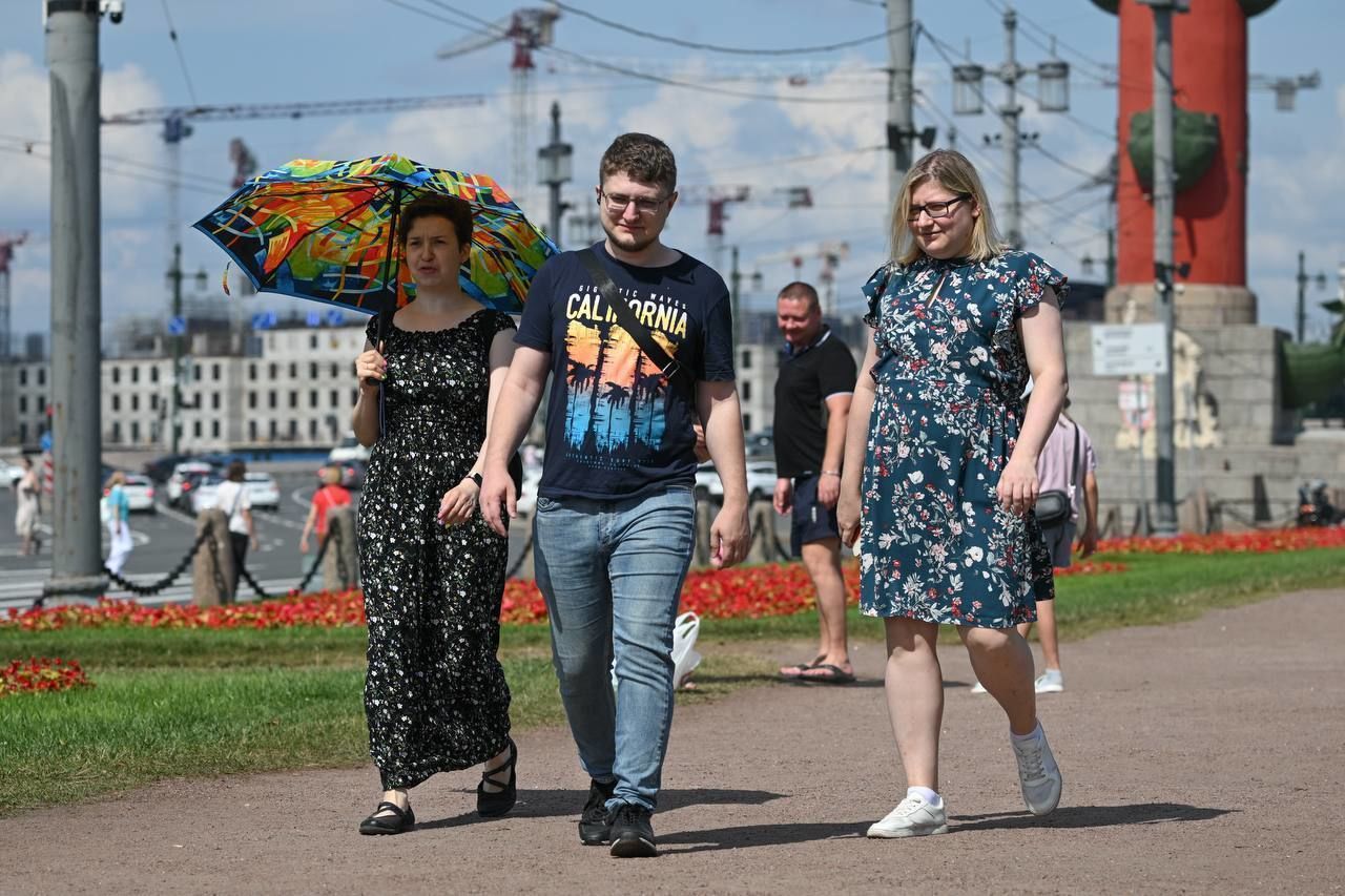 Жаркая погода накрыла Санкт-Петербург. Температура воздуха приближается к 30-градусной отметке. Однако это не останавливает горожан от прогулок и активного отдыха на свежем воздухе.