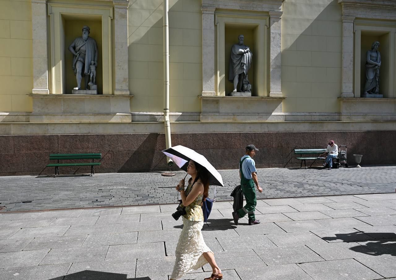 Для защиты от солнечного удара горожане используют зонтики, головные уборы, пьют много воды и едят мороженое.