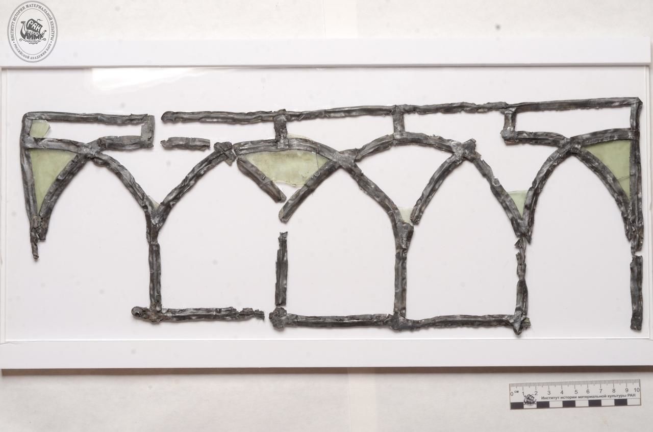 Уникальная находка представляет собой остатки витражного остекления, выполненного в классической технике паяного витража. В этой технике фигурные стёкла соединяются между собой с помощью свинцового профиля.