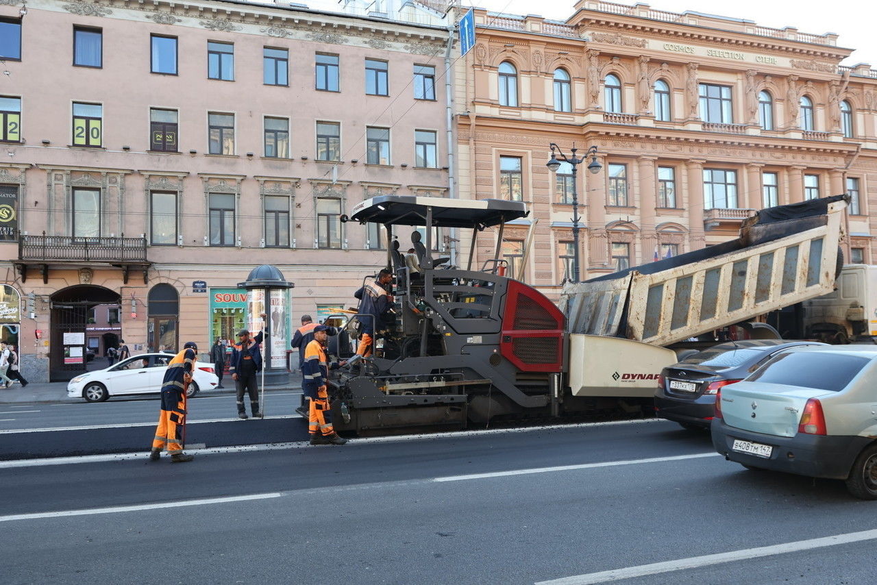 На Невском должны быть отремонтированы конструктивные элементы и люки канализации. Также предполагается уложить асфальтовое покрытие и нанести свежую разметку.