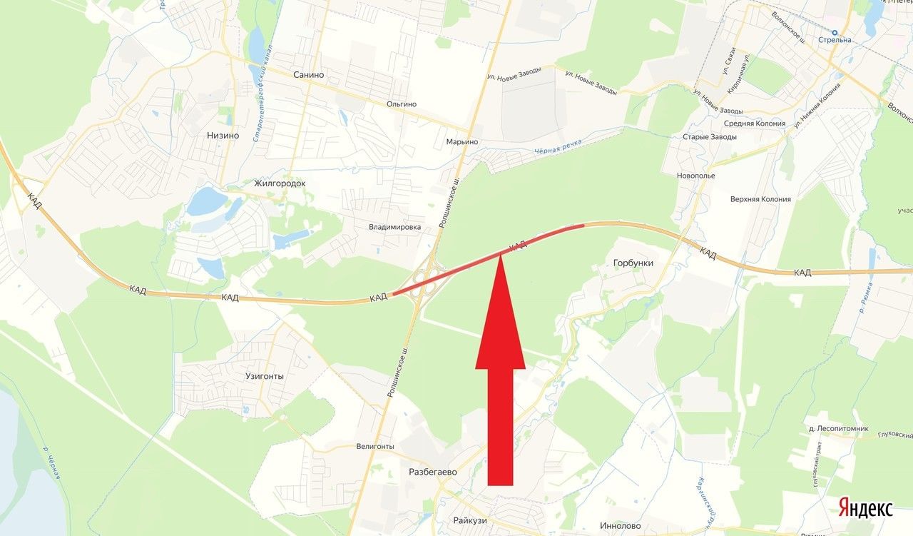 На внутреннем кольце КАД в районе Ропшинского шоссе ожидаются перекрытия