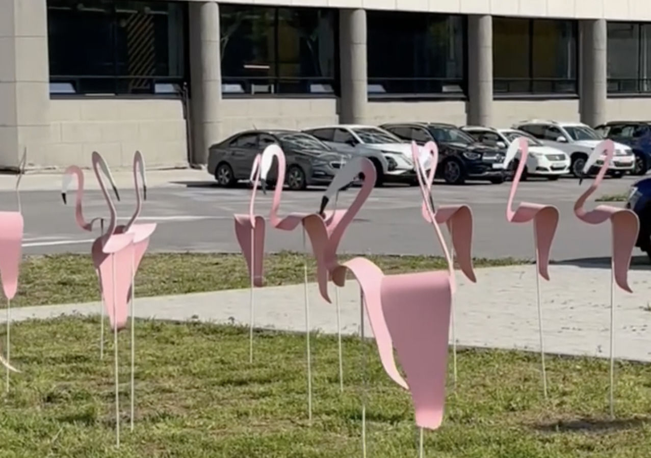 Почти 20 розовых птиц появились на лужайке во внутреннем дворе центра дизайна Design District DAA на Красногвардейской площади, 3Е, сообщили сегодня в пресс-службе администрации Красногвардейского района Петербурга.
