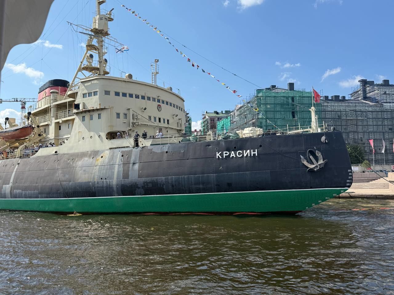 Последней точкой прогулки стал ледокол «Красин», стоящий у набережной Лейтенанта Шмидта. Знаковое судно и теплоход обменялись гудками.