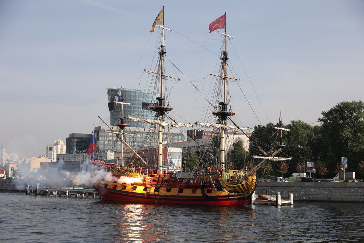 В День Военно-морского флота на рейде Петропавловской крепости встал 54-пушечный линейный корабль «Полтава». Это точная копия в натуральную величину линкора, который был спроектирован и построен в начале XVIII века при личном участии Петра Первого.