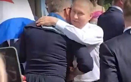 Моряк поблагодарил президента за борьбу с фашизмом и попросил охрану следить за его безопасностью. В ответ на это глава государства улыбнулся, обнял моряка и сказал много слов о тех людях, которые поддерживают бойцов Вооруженных сил России.