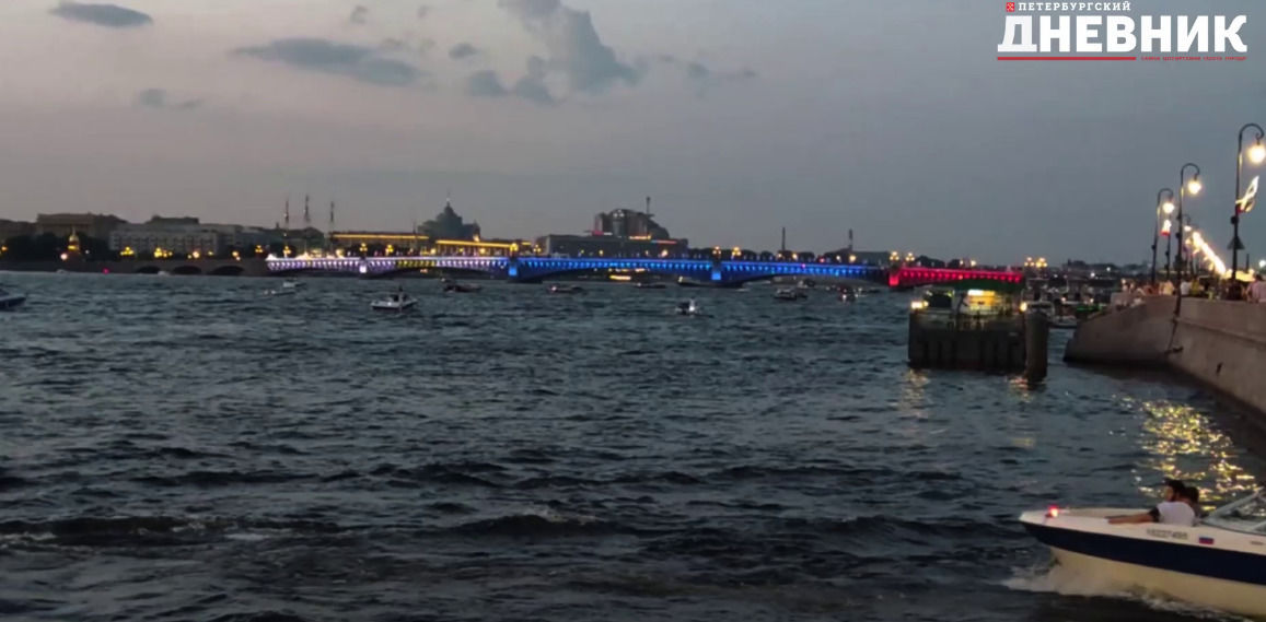 В День Военно-Морского Флота в Петербурге зажглись огни: Дворцовый, Троицкий и мост Бетанкура украсила праздничная подсветка в цветах российского флага. Ровно в полдень на стрелке Васильевского острова по давней петербургской традиции зажгут огни Ростральных колонн.