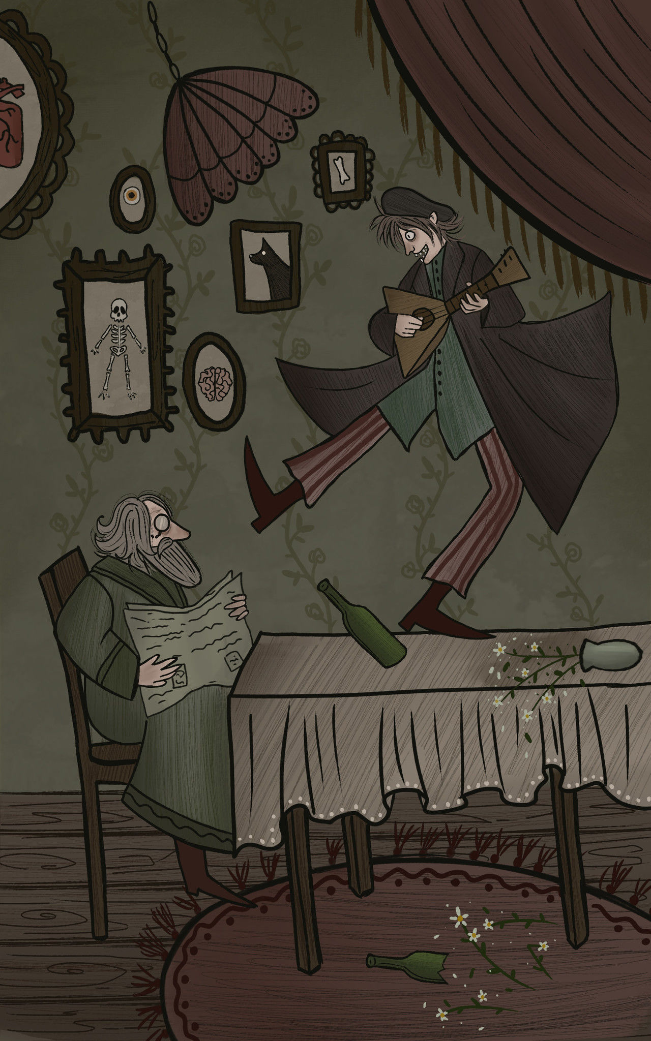 «Мне было важно передать двойственность главного героя – Шарика, который из бездомной собаки превращается в человека, – рассказала художница Вэлли, одна из победителей конкурса. – Собака с выражением растерянности и страха, а за её спиной – тень человека в шляпе, словно нависающая над ней. Это не просто силуэт, а тень профессора Преображенского или даже будущего Шарикова».