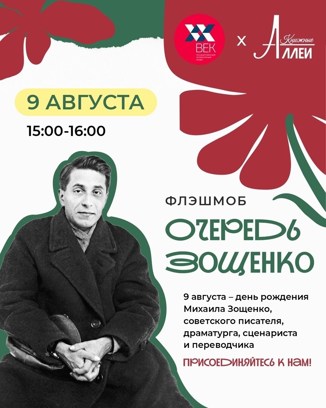 Необычный литературный флешмоб пройдёт в Петербурге в честь дня рождения Михаила Зощенко. Организаторы «Книжных аллей» совместно с Литературным музеем «XX век» решили воссоздать реальный эпизод из биографии писателя – длинную очередь, которую он однажды увидел на набережной канала Грибоедова.