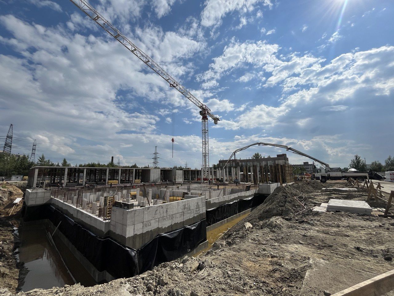 В квартале Полюстрово 24-27 Калининского района Санкт-Петербурга полным ходом идет строительство новой современной школы. На сегодняшний день завершены подготовительные работы и устройство котлована, на 90 % готов фундамент, а строители уже приступили к монтажу конструкций первого этажа. К концу года планируется возвести четырехэтажный корпус и закрыть тепловой контур здания, что позволит продолжить внутренние работы в зимний период. Об этом рассказал глава администрации Калининского района Михаил Асташкевич.