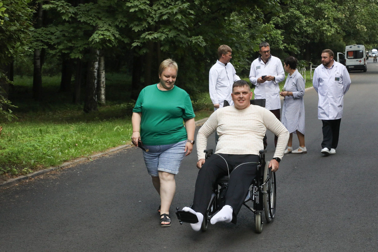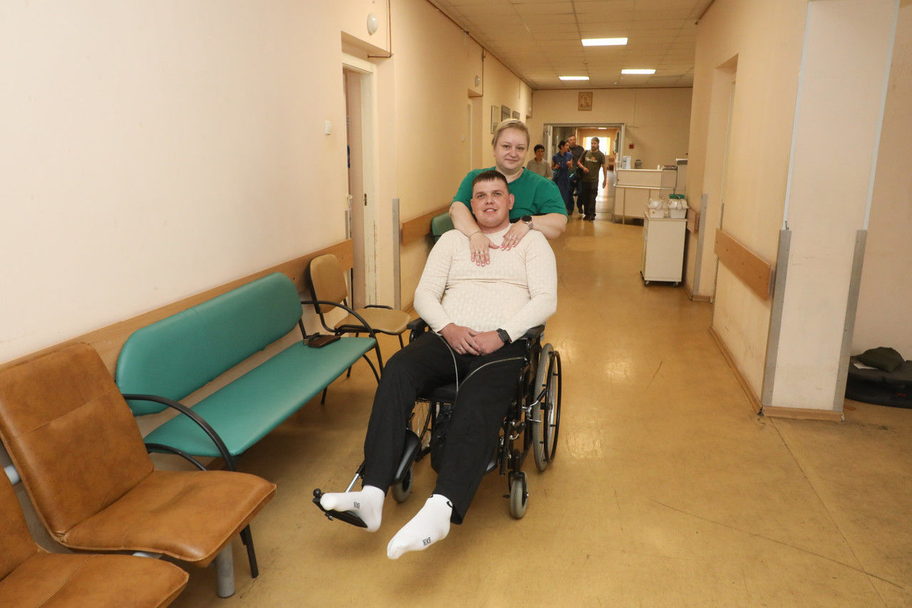 «Первая моя благодарность – медсестрам и санитаркам реанимации в Военно-медицинской академии, где он лежал. Они меня там многому научили. Как его переворачивать, как его протирать, как что-то менять, я же ничего не знала, я никогда с этим не сталкивалась. У нас в родне не было лежачих парней. Просто не было выбора, надо было ухаживать. И вот потихонечку, потихонечку. И здесь, в госпитале, помощь огромная, такое отношение чудесное! Все врачи, сестры поддерживают, переживают за нас. Палату нам отдельную выделили. Потому что для него главное, чтобы я была рядом. Я его очень люблю. Откуда силы? Не знаю. Бог, наверное, дает мне эти силы. Конечно, у него бывают срывы, когда он кричит, психует и меня отправляет куда-нибудь подальше. Ну, ничего, проходит время, потом он извиняется. Как-то так и дальше живем», – отвечает Марина.