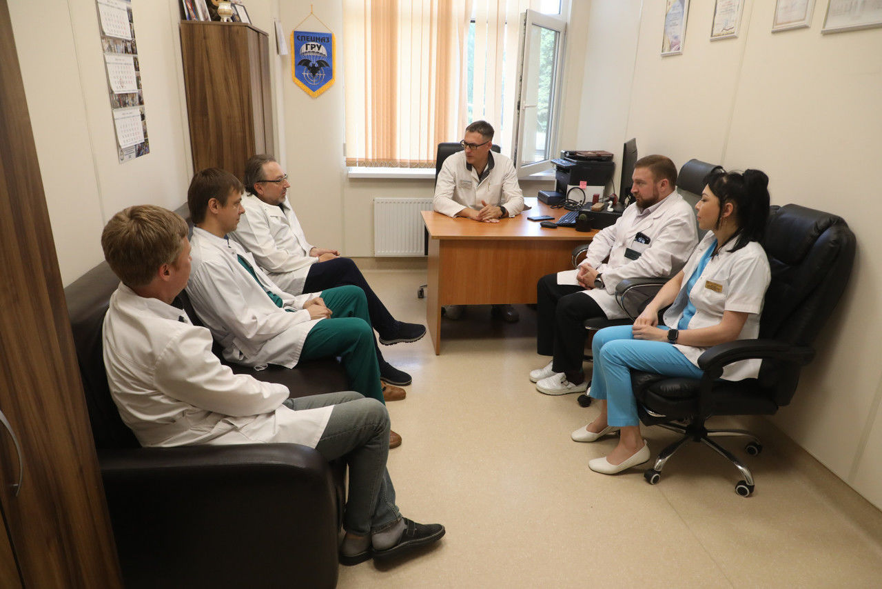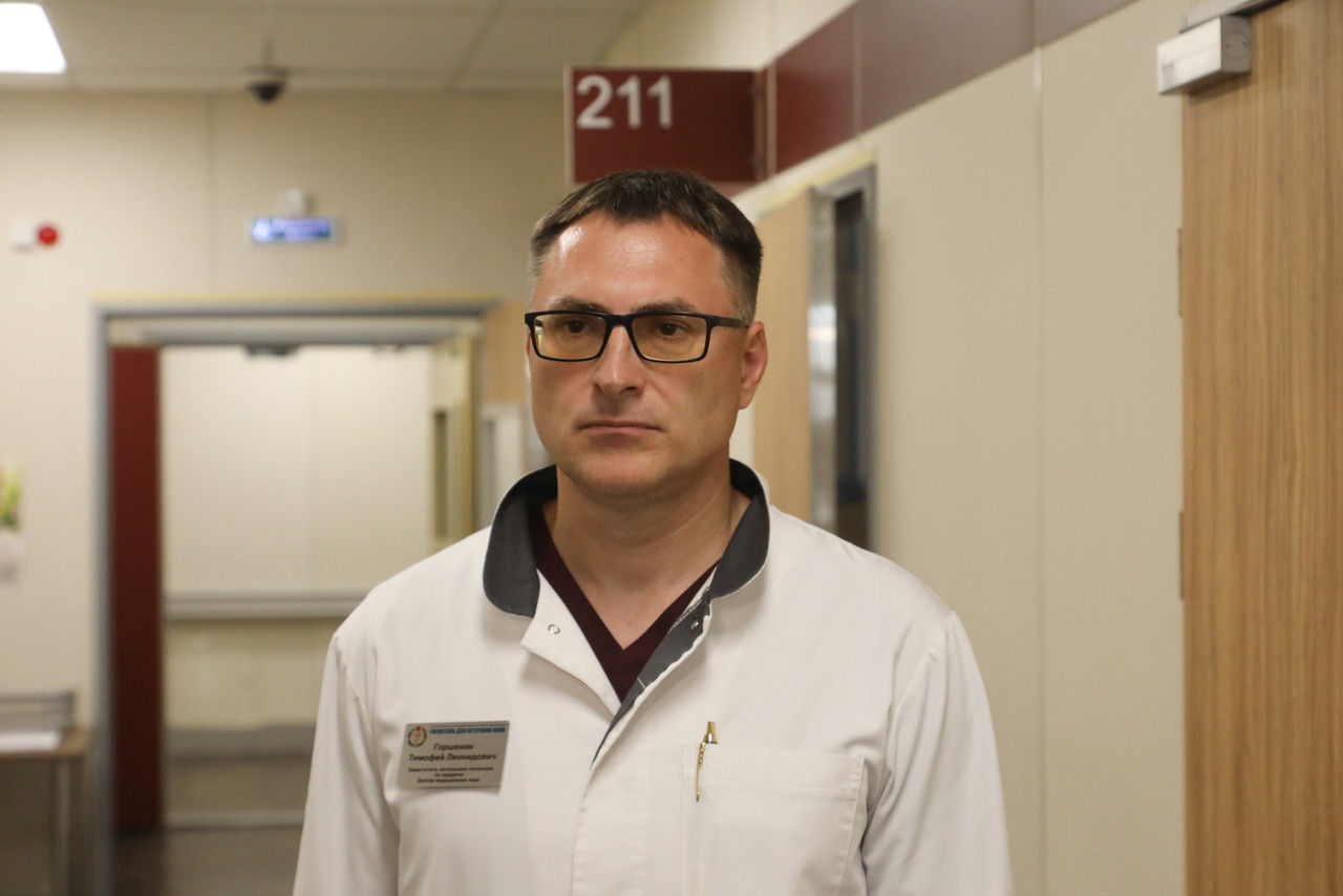 «Александр Гущев перенес тяжелое сочетанное ранение головы, груди, живота с повреждением и грудной, и брюшной полости, обширного повреждения таза и конечностей. Действительно, ранение было очень тяжелое, он прошел более 30 оперативных вмешательств в различных медицинских учреждениях нашей страны, значительная часть – в Военно-медицинской академии, из которой он уже был переведен к нам в госпиталь. Это были тяжелые этапные операции и на конечностях, и на органах таза, и на брюшной полости, и на мочевыводящих путях. Крайне тяжелый пациент с осложнениями, но благодаря нашей командной работе и врачам на всех этапах все справились и получили неплохой результат», – рассказывает Тимофей Горшенин, замначальника госпиталя по хирургии, доктор медицинских наук.