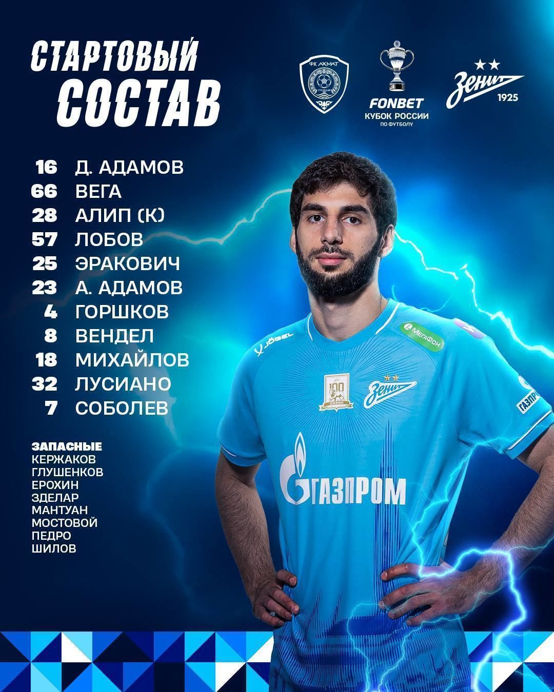 «Зенит» и «Ахмат» назвали стартовые составы на матч Кубка России