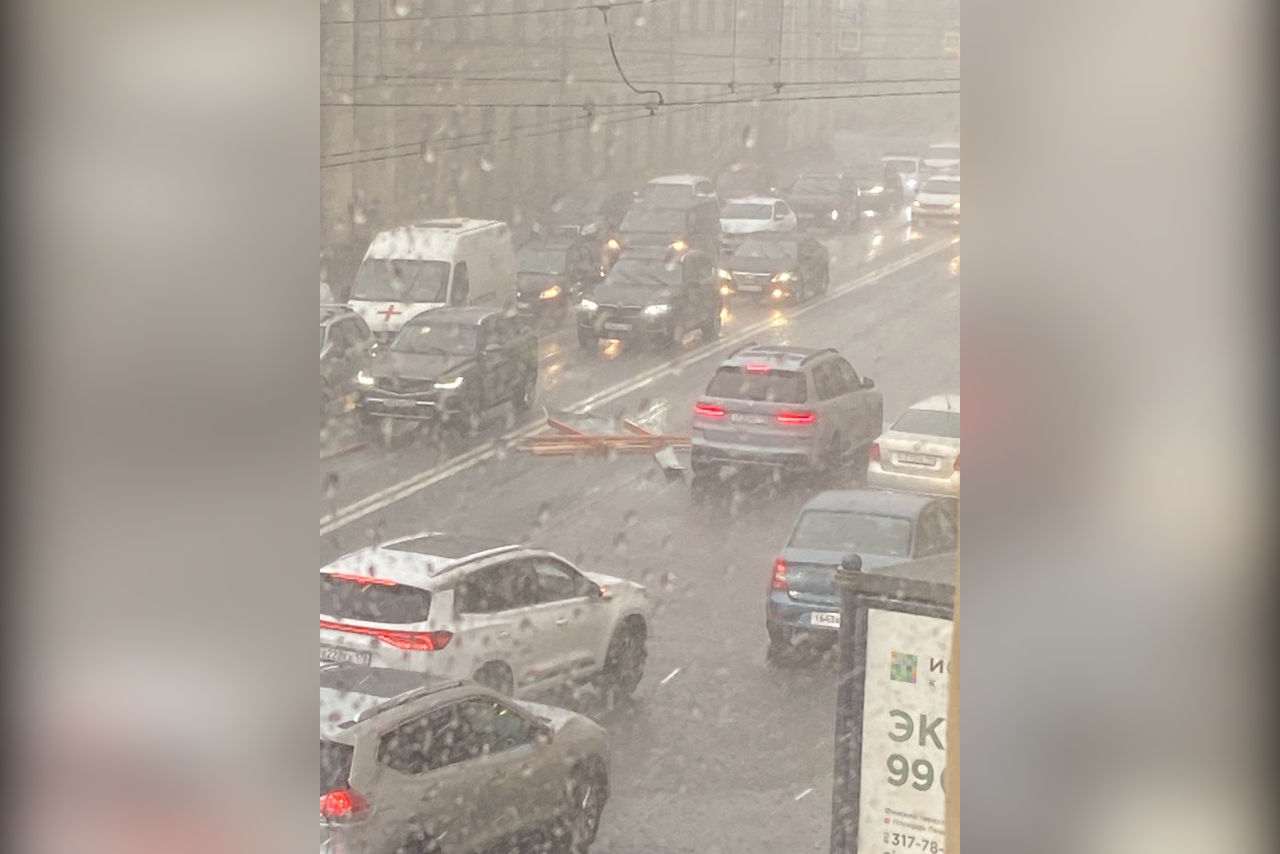 Крыша одного из зданий в Петербурге сорвалась из-за бури прямо на BMW