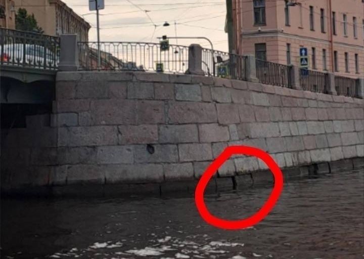 ЧП произошло вечером в понедельник, 28 июля. Черно-белый кот оказался в ловушке в отверстии гранитной облицовки набережной на глубине четырёх метров в месте разделения рек на канал Грибоедова и Фонтанку.