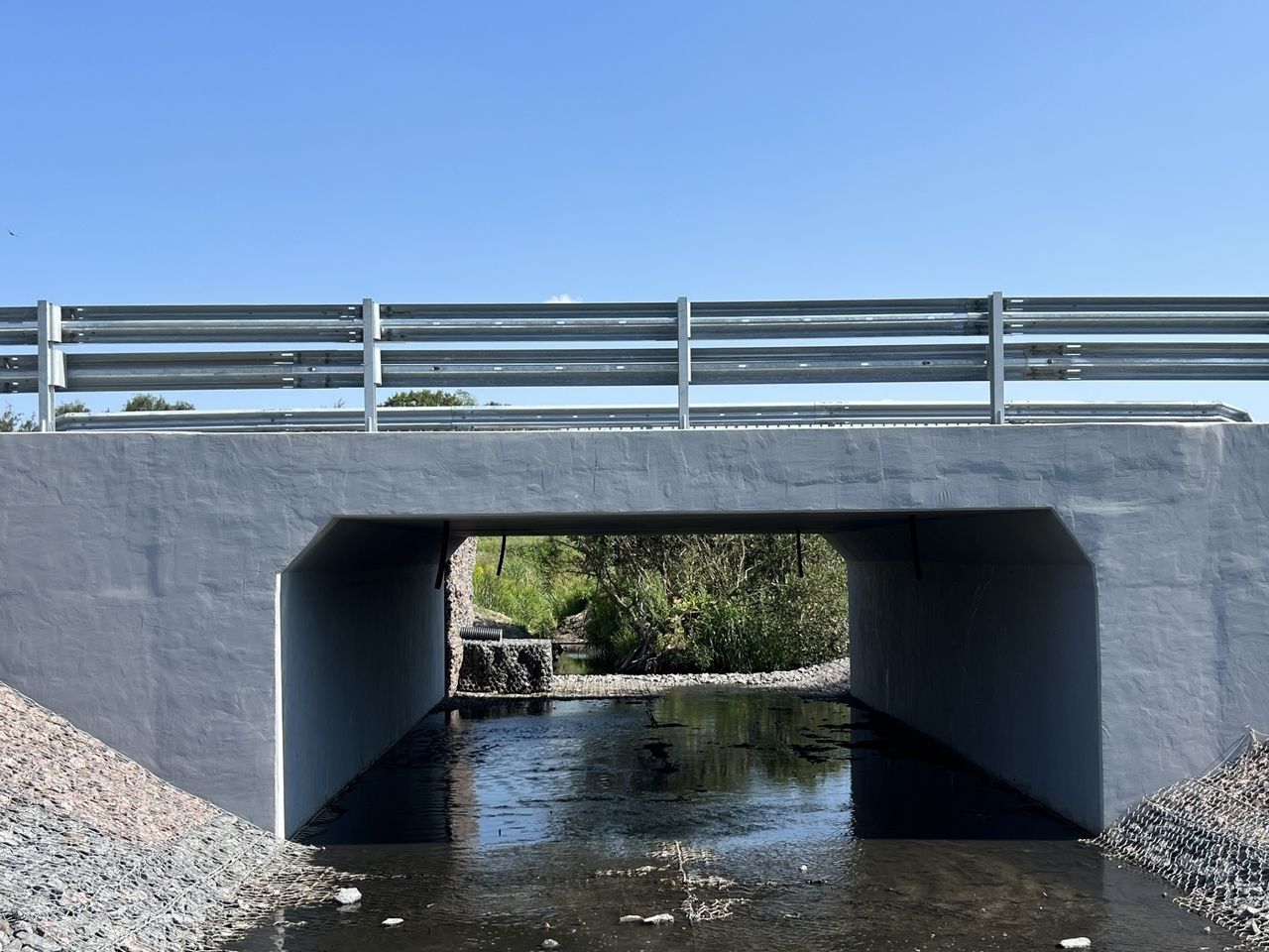 Длина пролета составляет 7,5 метра, а ширина переправы увеличилась до 12 метров с учетом пешеходной зоны и двух полос по 3 метра для транспорта. На новом мосту оборудован тротуар шириной 2,25 метра с ограждением из композитных материалов. На проезжей части уложены гидроизоляция и несколько слоев асфальтобетона, а все деформационные швы имеют закрытый тип.