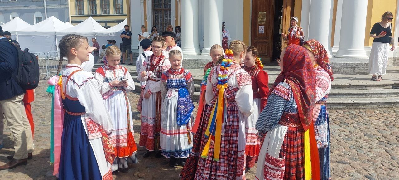 Перед торжественной церемонией открытия Дней Вологодской области по Соборной площади Петропавловки ходили былинные богатыри, русские красавицы в национальных одеждах и другие участники костюмированного праздника, который подготовила администрация региона. Они охотно фотографировались и общались с горожанами.