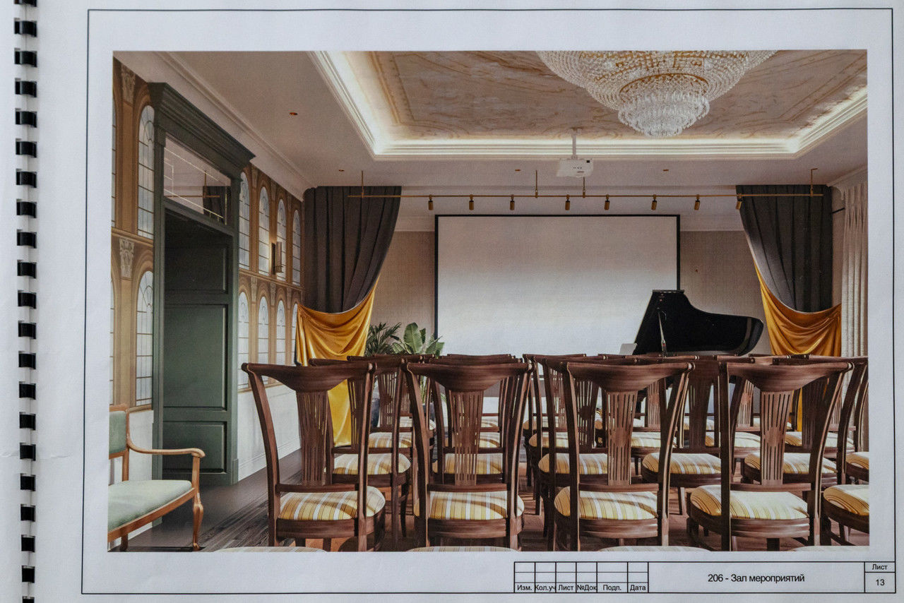 В гостиной, где с комфортом смогут расположиться 50-70 человек, вместо старенького пианино появится рояль «Соната» отечественного производства. Здесь будут проходить музыкальные вечера, встречи с интересными людьми, дискуссии и презентации книг.
