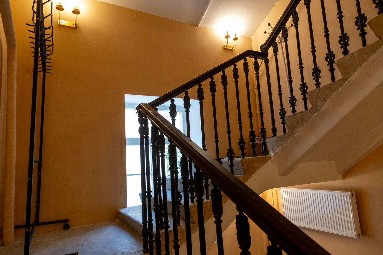 О временах Толстого напомнит буквально все. Например, зеркало над лестницей, ведущей на второй этаж. Оно выполнено в особой витражной технике «тиффани», придуманной сыном знаменитого ювелира Луисом Тиффани. Роскошную раму для него своими руками создали сотрудники библиотеки под руководством художницы Елены Панкратовой.
