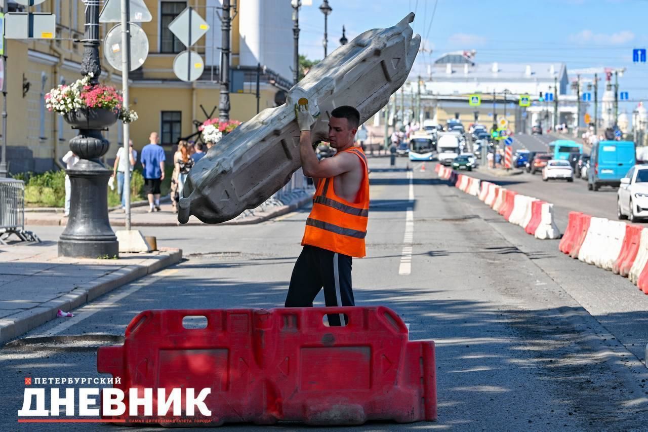 Накануне в Петербурге начались работы в Дворцовом проезде – выполнить их планируют меньше чем через неделю. Ремонт самого Невского проспекта стартует 13 августа и завершится примерно 27 августа. Процесс запечатлел фотограф «Петербургского дневника».