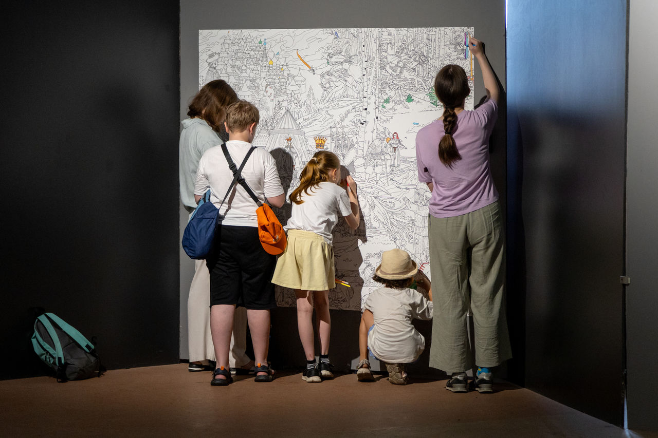 Почувствовать себя в роли Ивана Билибина смогут и посетители выставки. Для них студенты Художественно-промышленной академии имени А. Л. Штиглица создали гигантскую раскраску, на которой каждый желающий сможет расписать любой понравившийся фрагмент.