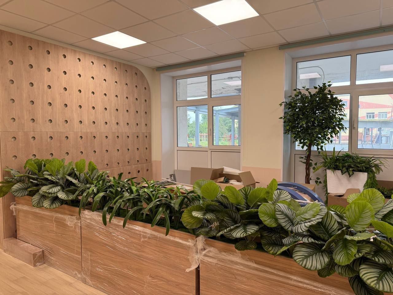 Одним из главных нововведений станет современная столовая, расположенная в отдельном здании с крытым переходом. Вместо прежней маленькой столовой, где ученикам приходилось есть по очереди, теперь будет просторный обеденный зал на 200 мест с возможностью выбора блюд: дети смогут самостоятельно решать, что брать на завтрак или обед.