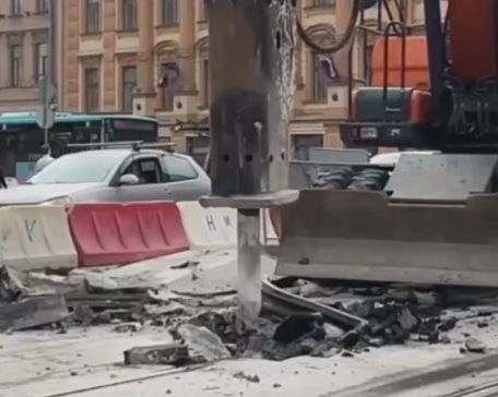 В Петербурге стартовал ремонт трамвайных путей на пересечении Невского и Литейного проспектов – видео