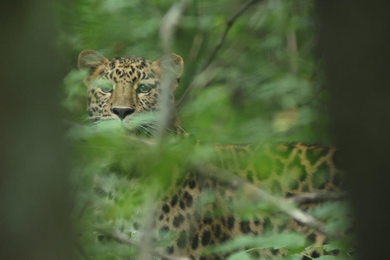 Как сообщает «Крым 24», неожиданная встреча произошла во время проверки фотоловушек. Дальневосточный леопард, заметив людей, затаился в кустах на расстоянии 10–15 метров, позволив учёным наблюдать за ним в течение пяти минут.