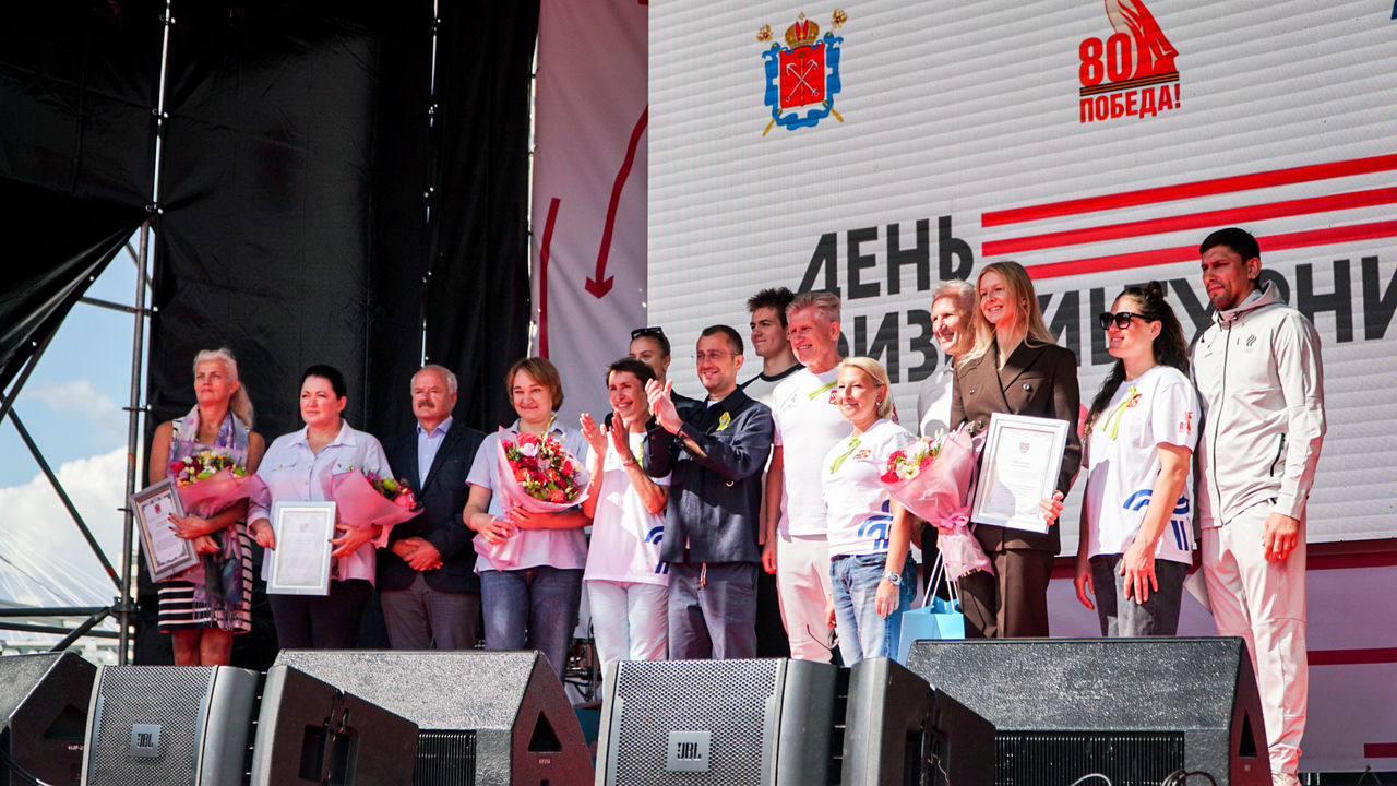 На главной сцене праздника чествовали наших спортсменов – победителей и призеров чемпионата мира по водным видам спорта. Вице-губернатор Борис Пиотровский вручил благодарности губернатора Санкт-Петербурга Александра Беглова чемпионам мира по плаванию Александре Кузнецовой, Мирону Лифинцеву, серебряному призеру чемпионата Евгении Чикуновой, тренерам Ольге Байдаловой, Елене Кузнецовой, Михаилу Горелику (все – плавание) и Светлане Леонтьевской (прыжки в воду).