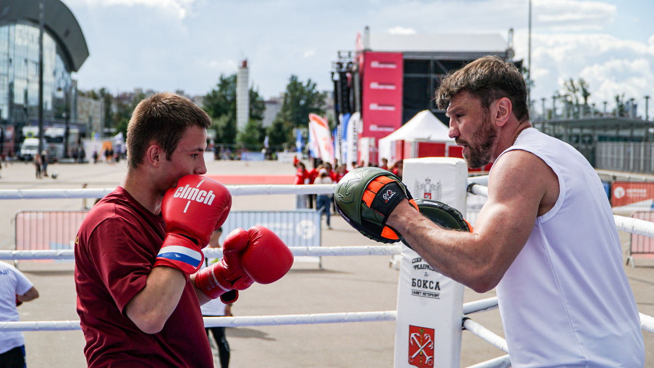 В рамках праздника у «Газпром Арены» работают площадки с активностями – баскетбол 3х3, зона ГТО, бокс и другие.