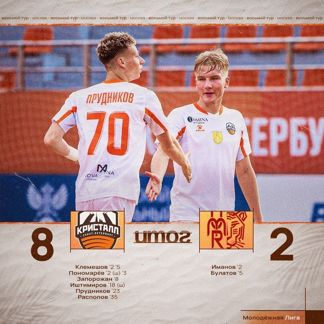 В Москве продолжается второй этап Молодёжной лиги по пляжному футболу. Сегодня петербургский «Кристалл» одержал уверенную победу над «Краснодаром» со счётом 8:2 и вернулся на временное первое место в турнирной таблице.