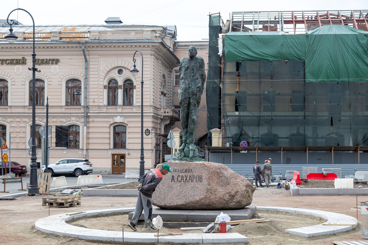 Корреспондент «Петербургского дневника» запечатлел, как в настоящее время идет ремонт на площади Сахарова.