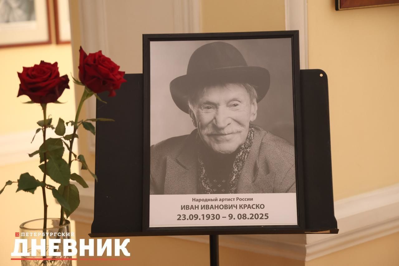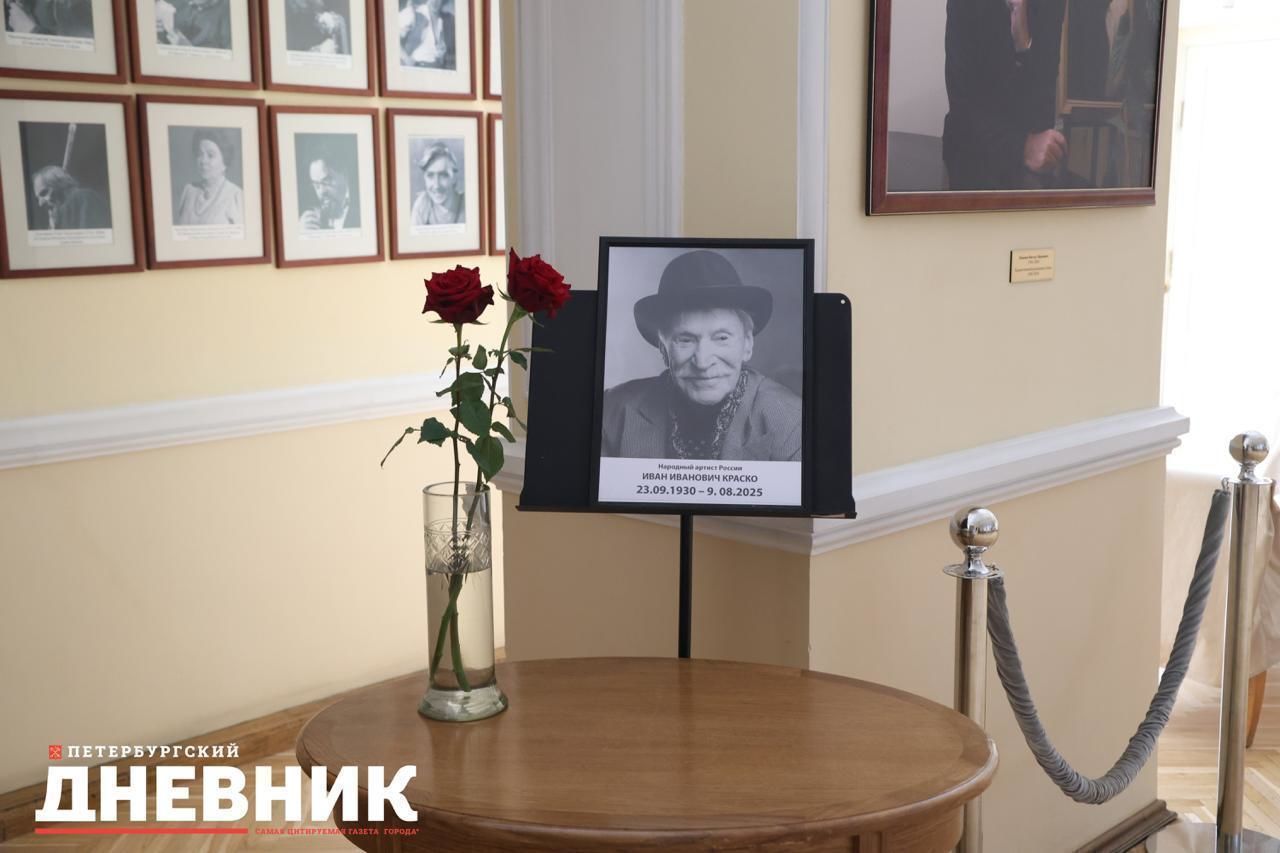 В Малом фойе Театра имени Комиссаржевской на Итальянской улице, 19, установлены портрет Ивана Краско и две розы. Напомним, прощание с народным артистом России состоится в театре 13 августа с 10:00 до 11:30.