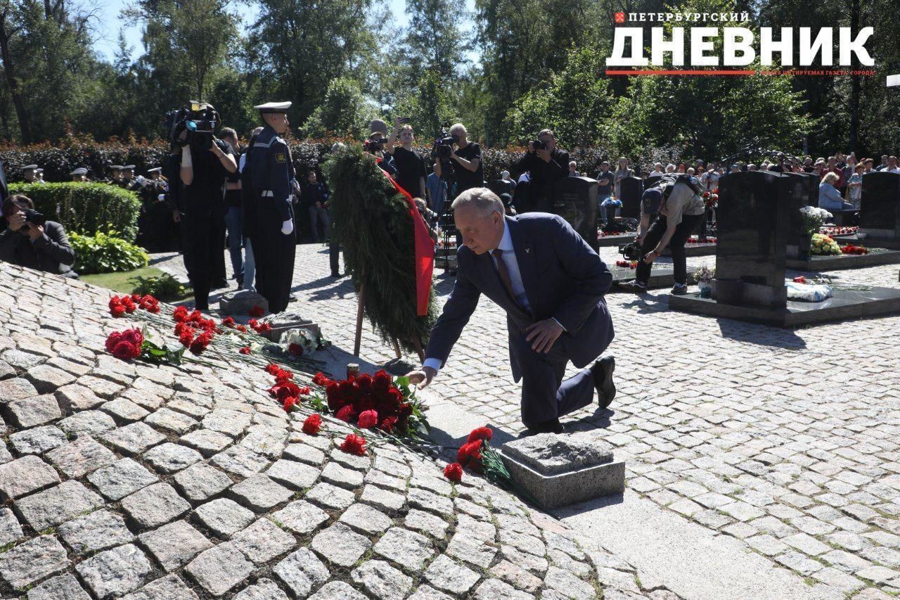 В мероприятии на Серафимовском кладбище приняли участие члены правительства Санкт-Петербурга. Губернатор Александр Беглов возложил цветы к памятнику героическому экипажу «Курска». Алые розы легли на все 32 черные мраморные плиты, на которых увековечены имена погибших моряков-подводников.